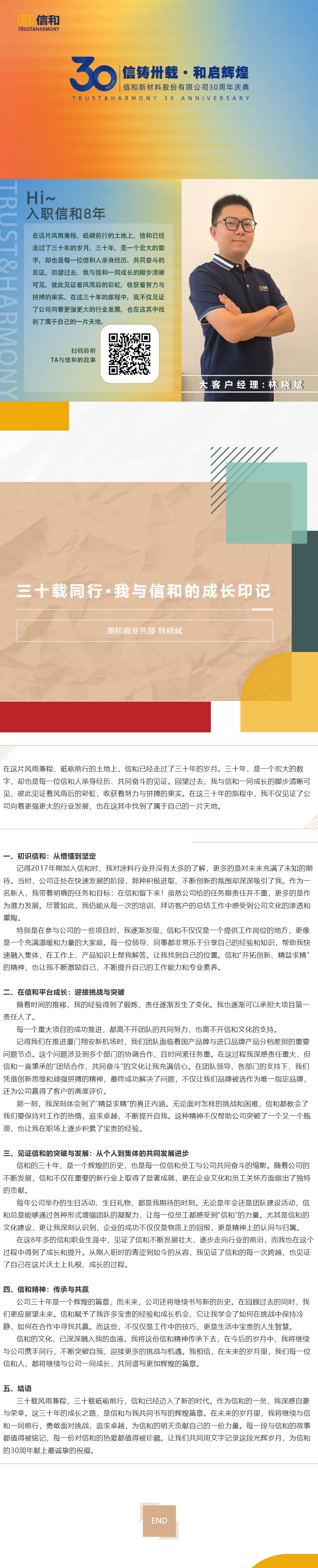 【三十载同行•我与信和的成长】三十载同行·我与信和的成长印记——重防腐业务部 林晓斌