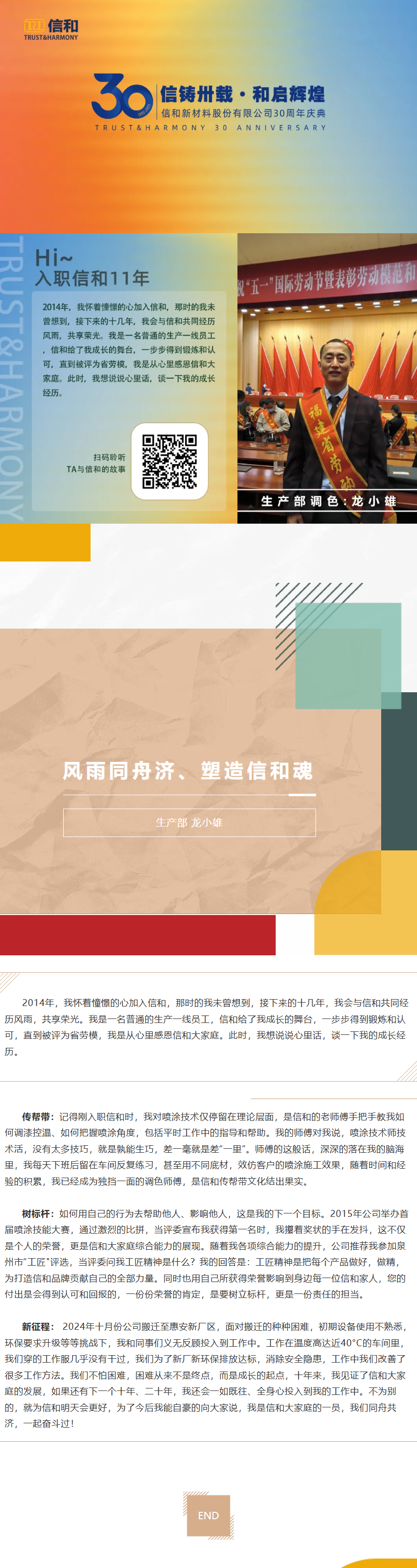 【三十载同行•我与信和的成长】风雨同舟济、塑造信和魂——生产部 龙小雄