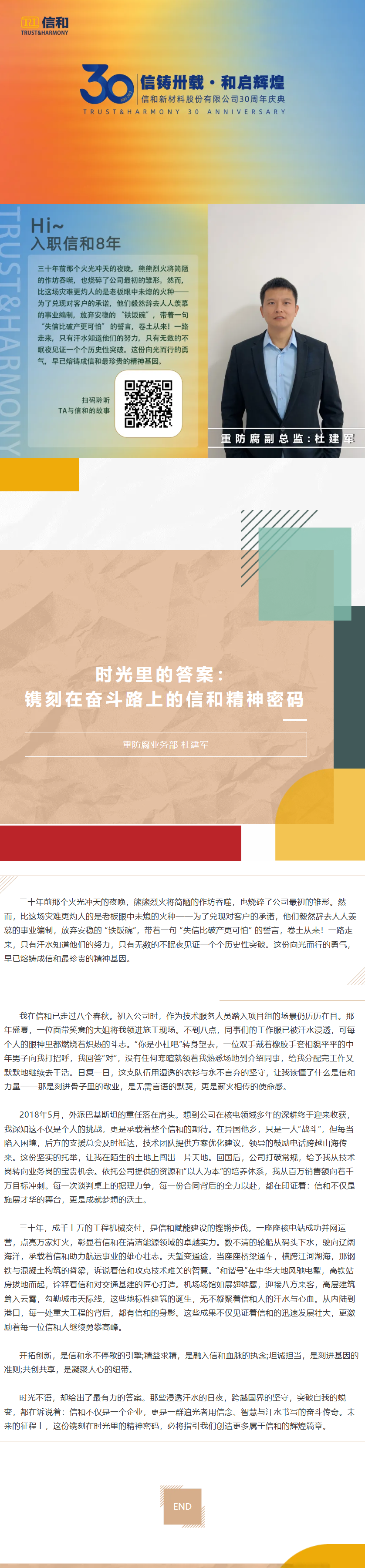 【三十载同行•我与信和的成长】时光里的答案:镌刻在奋斗路上的信和精神密码——重防腐业务部 杜建军