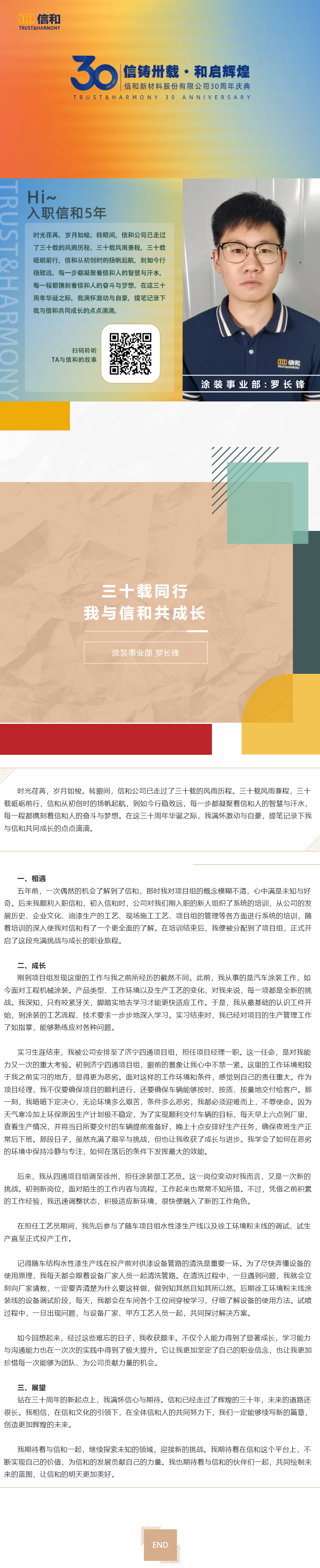 【三十载同行•我与信和的成长】三十载同行,我与信和共成长——涂装事业部 罗长锋