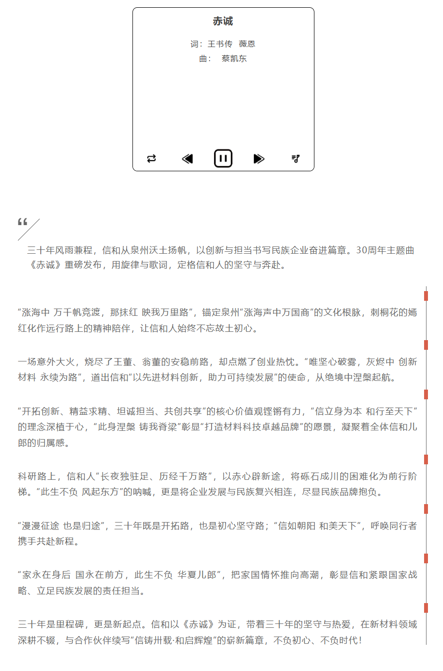 信铸卅载·和启辉煌 | 信和新材料30周年主题曲《赤诚》:以初心赴征程